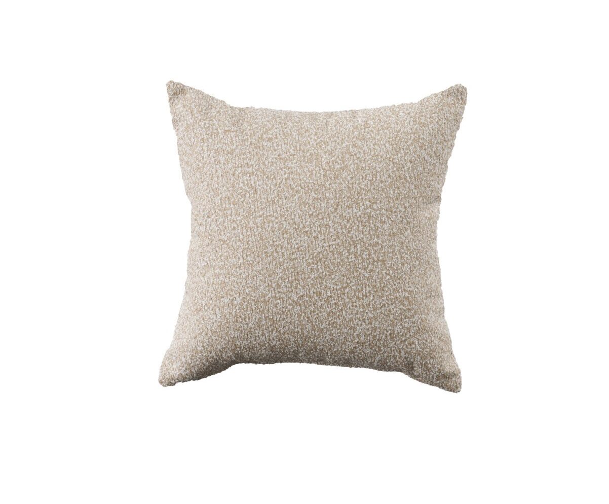 כרית נוי עשויה בד בוקלה בגוון בז', הבד הינו אולפין צבוע בתמיסה בעל ביצועים גבוהים, המיועד לריהוט פנים וחוץ. הוא כולל את טכנולוגיית Mackintosh Inside™ הרשומה כפטנט, המטמיעה דחיית מים ישירות בחוט, מה שמבטיח עמידות הבד, ועמידות בפני כתמים וייבוש מהיר