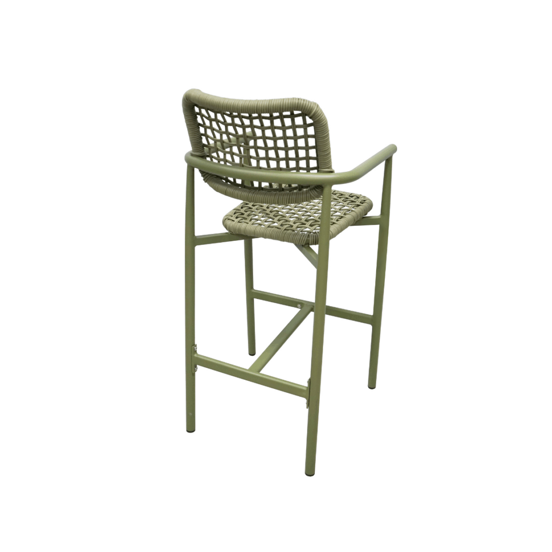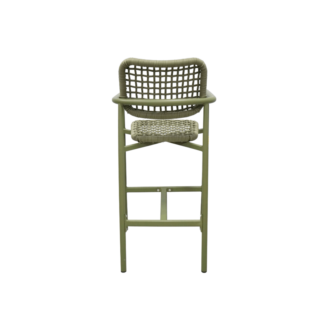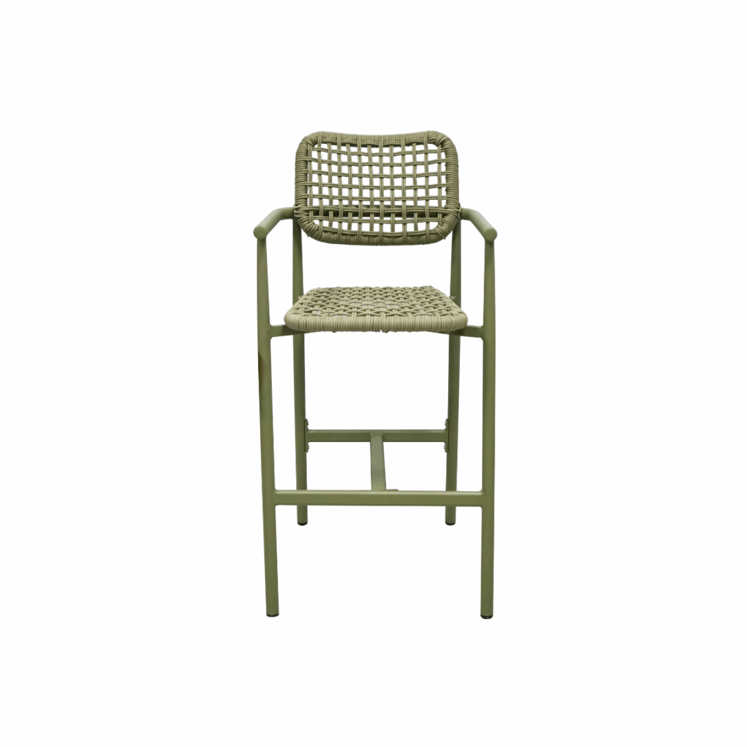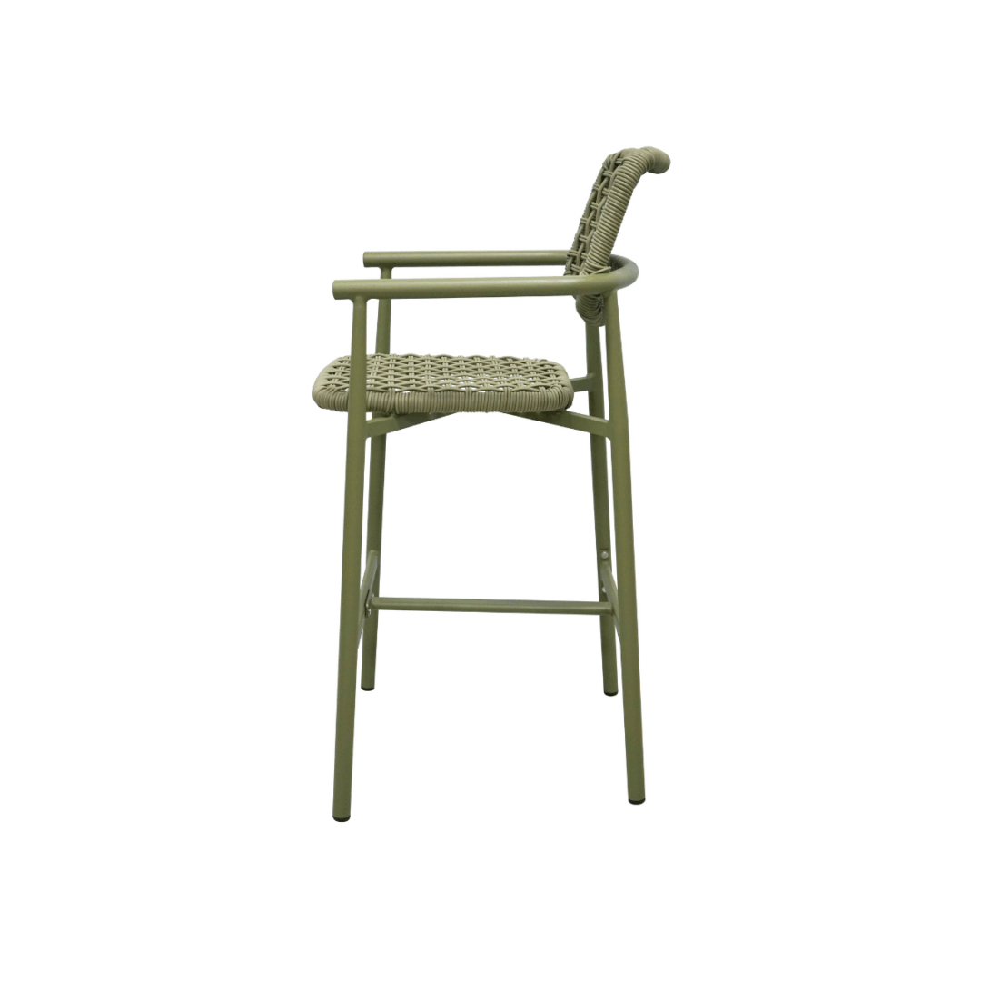 כיסא בר עם ידיות בעיצוב ייחודי עשוי שלדת אלומיניום בשילוב גב ומושב עשוי ראטן סינטטי המיועד לתנאי חוץ. צבע ירוק זית. *צפי אספקה: סוף ינואר